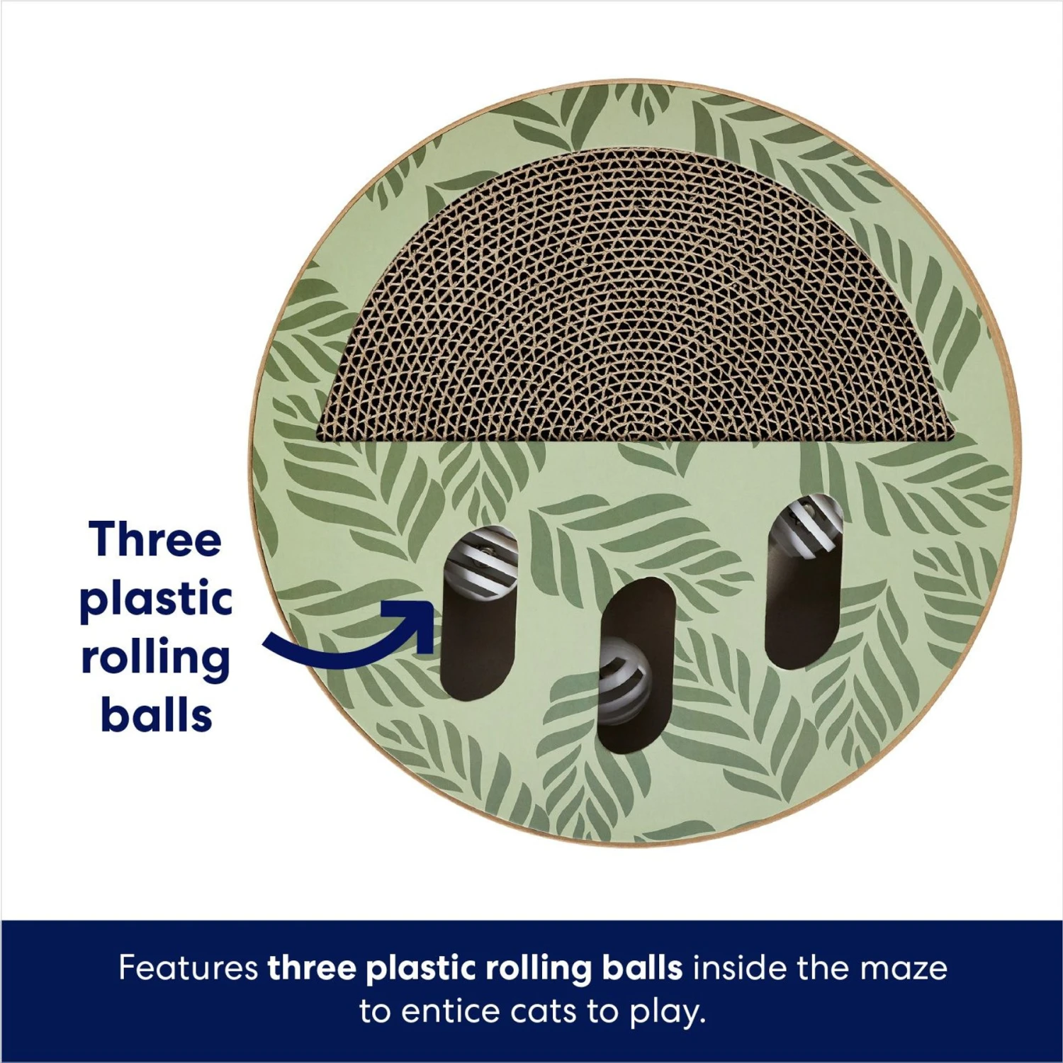 - Interactive toy provides mental stimulation and exercise with a scratchable surface and three plastic balls that roll freely inside, offering sights and sounds your cat will love exploring.