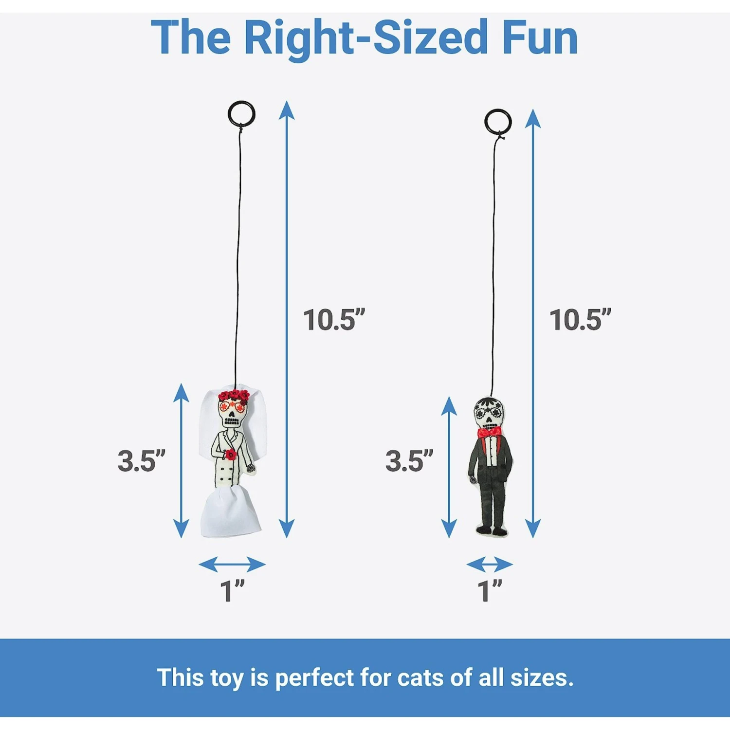 - Includes individual sugar skull bride and groom toys, each attached to bouncy strings.