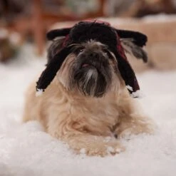 - This cozy, flannel trapper hat features a plaid pattern and traditional, human-style earflaps.